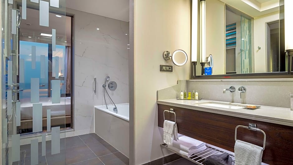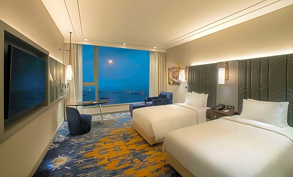 Featuring floor-to-ceiling windows and panoramic sea view, this room comes with air conditioning and a safety box. You will be provided with WiFi access, 47-inch TV, ironing facilities and a movable desk. A walk-in shower and a bathtub are available in the private bathroom.